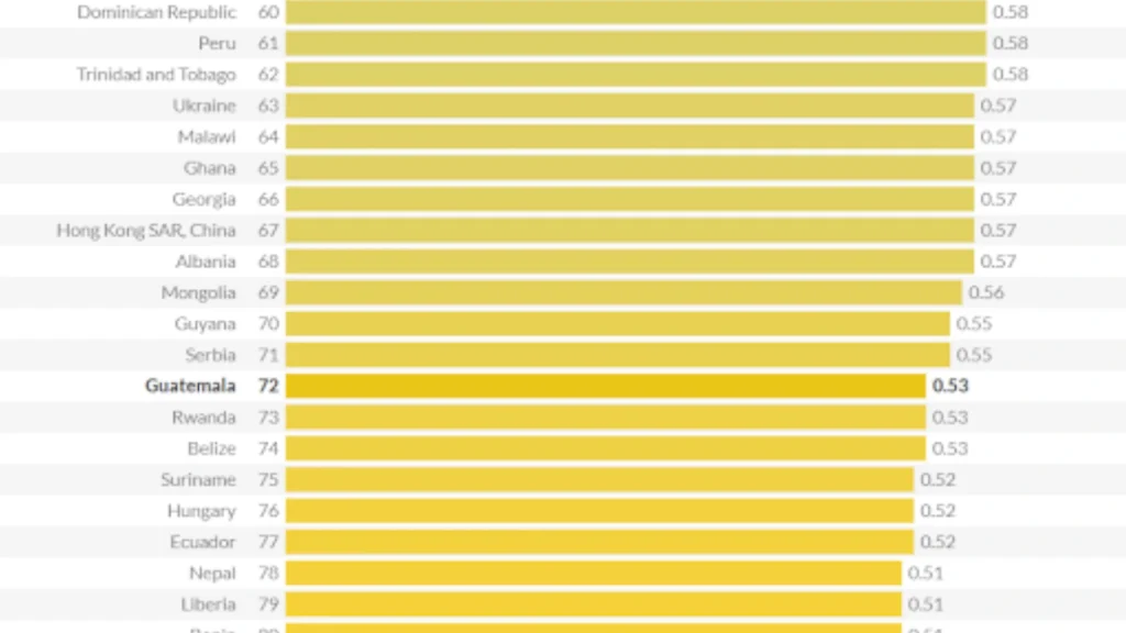 De acuerdo con el Índice de Estado de Derecho de 2025 del World Justice Project, que evalúa a 143 Estados, Guatemala se ubica en el puesto 72 en lo referente al respeto de derechos fundamentales, entre ellos la libertad de expresión, de manifestación y de asociación, indispensables para que la ciudadanía pueda supervisar y participar en la toma de decisiones públicas.